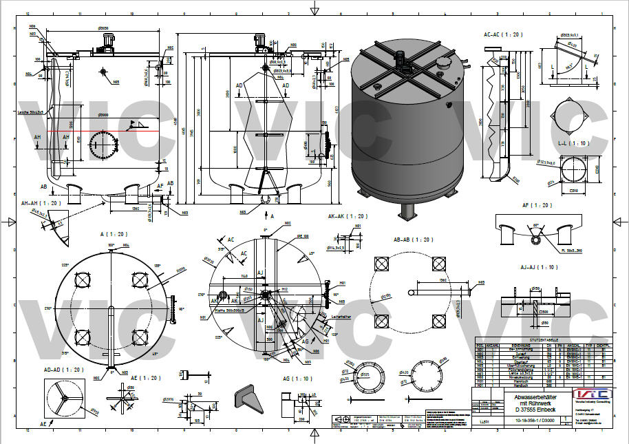 Nachstehend ein Toxischer Abwasserbehälter mit Rührwerk für KWS Saat, in zwei Hälften angeliefert und Baustellengeschweißt